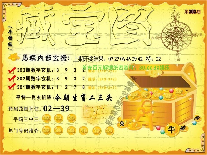 304期:平特藏宝图玄机:【今期特码又是双】 解:今期特码又是双,解鼠,平特鼠 推荐平码:19.18.01.30.27.40 开奖结果:12.47.43.34.39.19T48 |